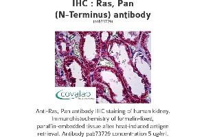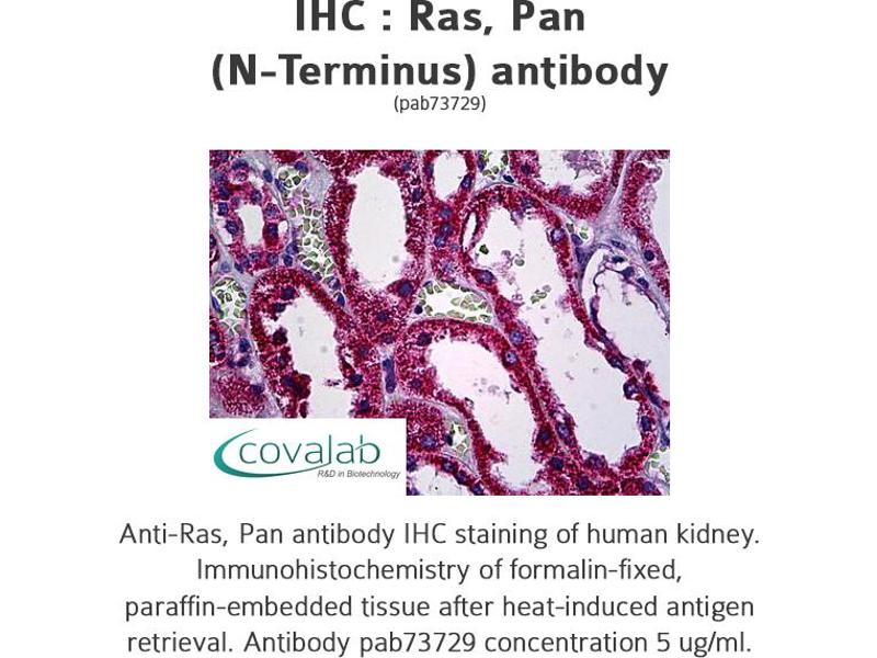 - Reacts with the N-terminus part of human Ras, Pan. Cross reacts with mouse and rat protein.