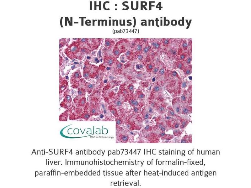 - Synthetic 15 amino acid peptide from N-terminus of human SURF4. Percent identity with other species by BLAST analysis: Human (100%), Gorilla (100%), Orangutan (100%), Gibbon (100%), Monkey (100%), Mouse (100%), Rat (100%), Bovine (100%), Opossum (93%)