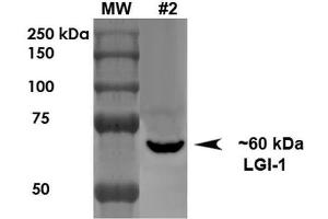 - Fusion protein amino acids 37-113 (LRRNT domain and first LRR repeat) of mouse LGI1. Rat: 100% identity (77/77 amino acids identical). Human: 98% identity (76/77 amino acids identical). ~50% identity with LGI2, LGI3 and LGI4.