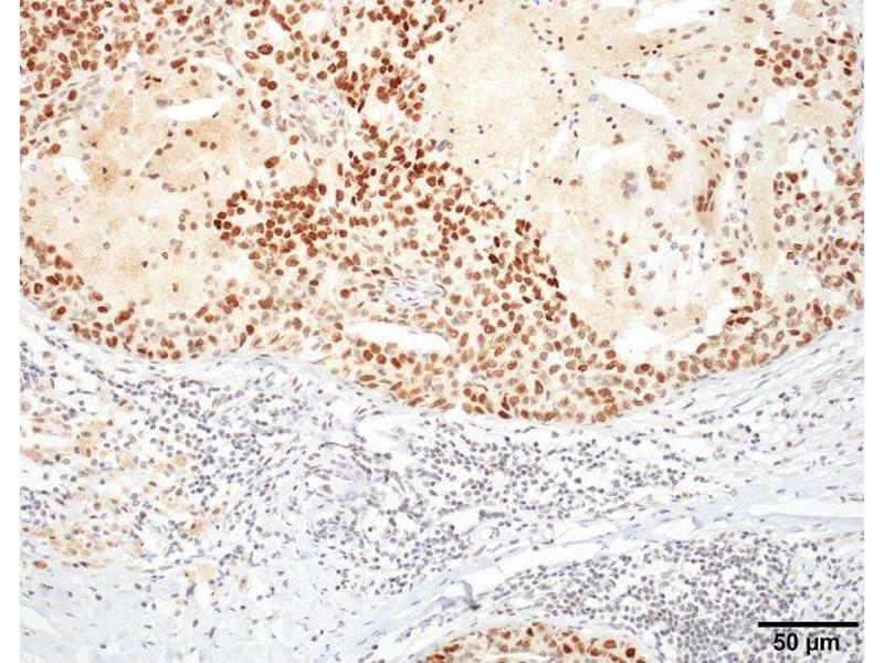 1 μg/ml of ABIN1741552 was sufficient for detection of HSF1 in 20 μg of heat shocked HeLa cell lysate by colorimetric immunoblot analysis using Rabbit anti-rat IgG: AP as the secondary antibody.