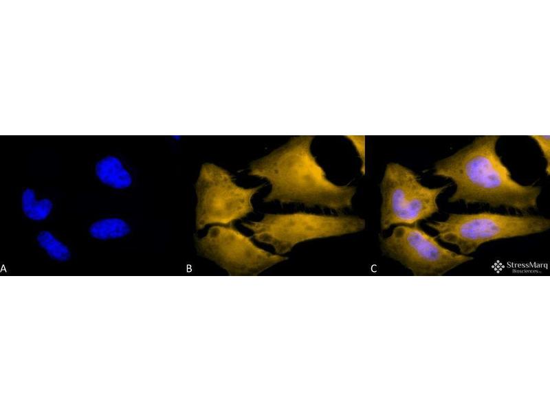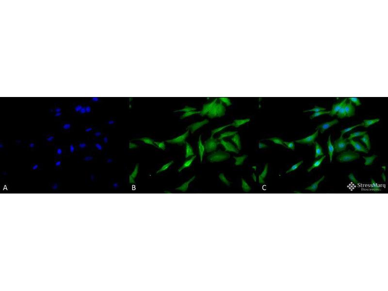 - Detects ~85 kDa (unstressed cell lysates) and ~95 kDa (heat shocked cell lysates).