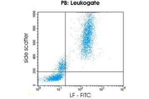Lactoferrin (LF) is an iron-binding protein with bactericidal and bacteriostatic activity, which is stored within the secondary granules of granulocytes. LF expression is restricted to the post-mitotic maturation compartment of the granulocytic lineage, starting from the myelocyte stage. Normal and malignant myeloblasts are LF negative. The 4C5 antibody permits the identification and enumeration of human granulocytes using flow cytometry. Results must be put within the context of other diagnostic tests as well as the clinical history of the patient by a certified professional before final interpretation. Analyses performed with this antibody should be paralleled by positive and negative controls.