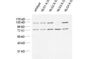 - Specific for neuroligin 3. No signal on neuroligin 3 knockouts. Detects other neuroligins when heavily overexpressed.
