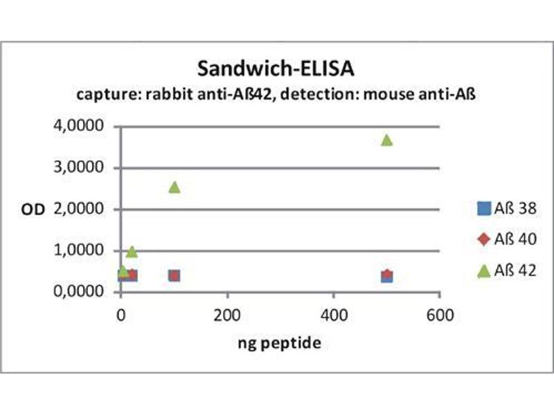WB: Detects purified Abeta 42. Complex samples like brain extracts still have to be tested. Nitrocellulose membrane is recommended for blotting.