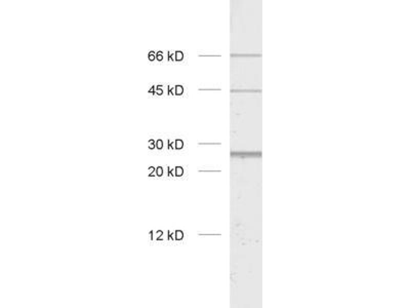 This antibody detects also higher molecular weight bands, depending on the glycosilation state of the protein. The protein tends to aggregate after boiling, making it necessary to run SDS-PAGE with non-boiled samples.