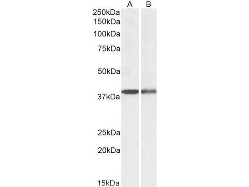 Western Blot: Approx 38 kDa band observed in lysates of cell line U937 and of Human, Mouse and Rat Spleen (calculated MW of 38.5 kDa according to NP_001738.2). In Peripheral Blood Lymphocytes, the observed band runs as ~40 kDa. Recommended concentration: 0.