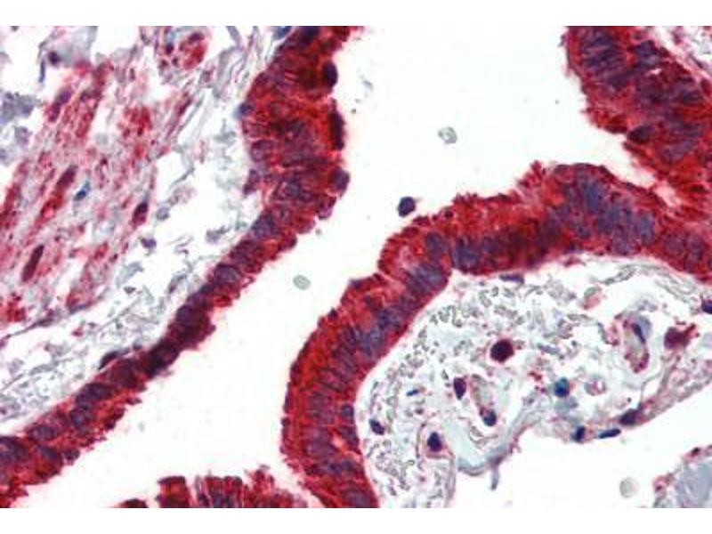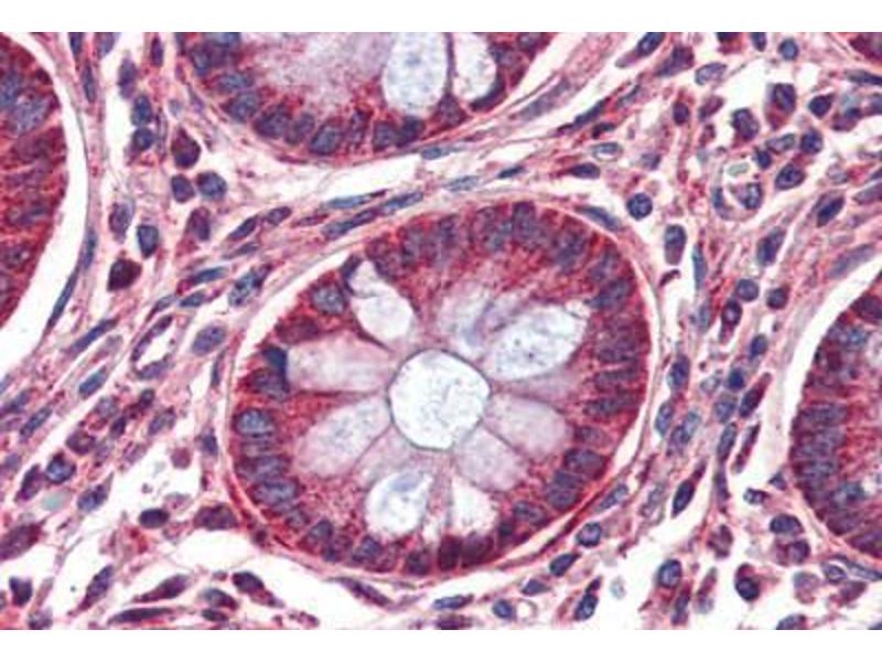 Usage: Immunohistochemistry: This antibody was validated for use in immunohistochemistry on a panel of 21 formalin-fixed, paraffin-embedded (FFPE) human tissues after heat induced antigen retrieval in pH 6.0 citrate buffer. After incubation with the primary antibody, slides were incubated with biotinylated secondary antibody, followed by alkaline phosphatase-streptavidin and chromogen. The stained slides were evaluated by a pathologist to confirm staining specificity. The optimal working concentration for this antibody was determined to be 10 μg/mL. -