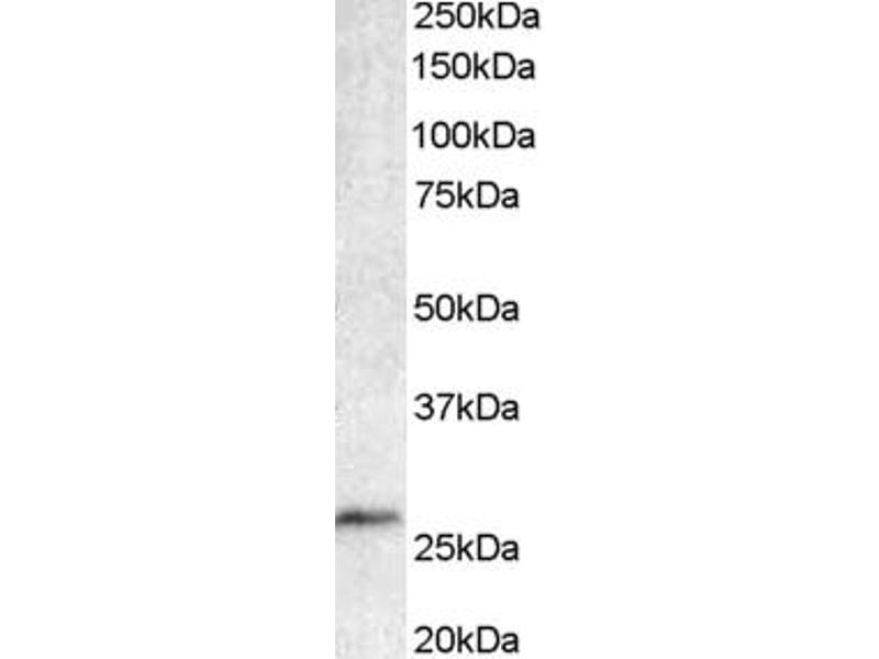 Western Blot: Approx 26 kDa band observed in Human Lymph Node lysates (calculated MW of 25.0 kDa according to NP_066273.1). Recommended concentration: 1-3 μg/mL. Primary incubation 1 hour at room temperature.