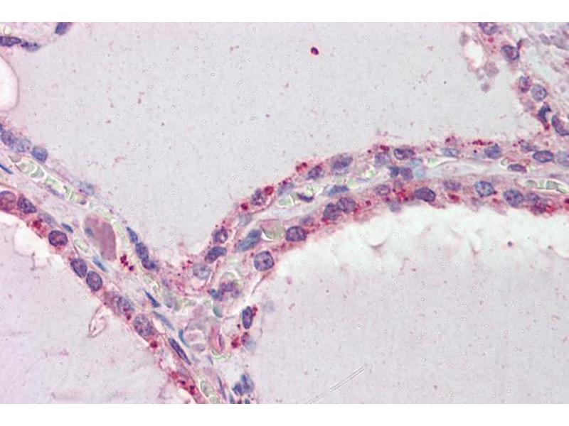 Immunohistochemistry: Paraffin embedded Human Breast and Thyroid. Recommended concentration: 2.5 μg/mL.
