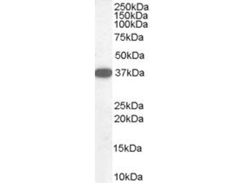 Western Blot: Approx 37 kDa band observed in Human Cerebellum, Kidney and Testis lysates, and in lysates of cell lines HepG2 and LNCaP (calculated MW of 31.1 kDa according to NP_036269.1). This molecular weight is routinely observed by other sources. Rec