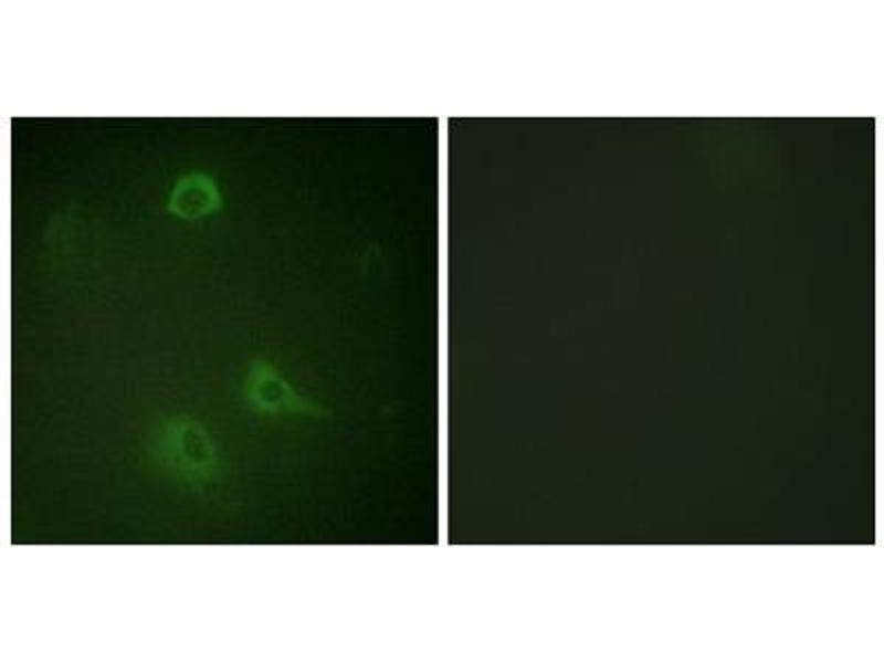 The antiserum was produced against synthesized phosphopeptide derived from human NMDAR1 around the phosphorylation site of serine 890 (A-S-SP-F-K).