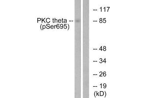 - Rabbit polyclonal antibody against PKC theta protein. Specificity is as follows for the reactive species: H:S695