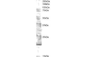 Western Blot: Approx 20 kDa band seen in human brain lysate. Recommended for use at 0.2-1 μg/mL.