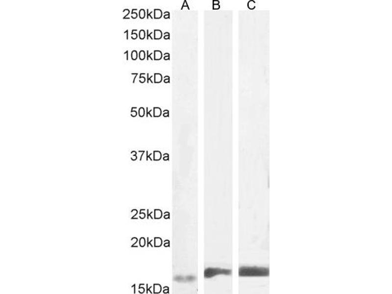 Western Blot: Approx. 16-17 kDa band observed in Human Frontal Cortex and in Mouse and Rat Brain lysates (calculated MW of 16.7 kDa according to Human NP_001614.3, 16.9 kDa according to Mouse NP_062340.1 and 16.8 kDa according to Rat NP_058892.1). Recommende