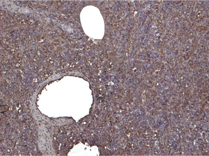 Immunohistochemistry: Paraffin embedded Human Spleen. Recommended concentration: 6-8 μg/mL.