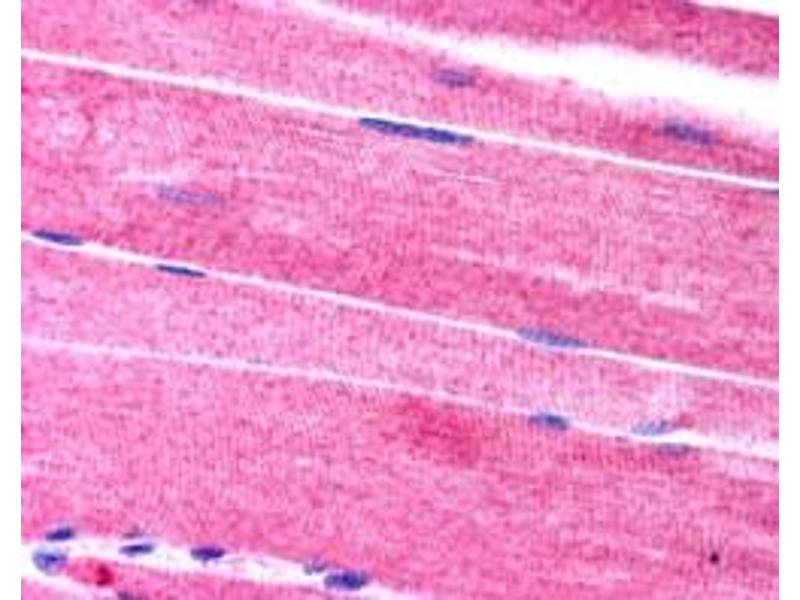 Immunohistochemistry: Paraffin embedded Human Skeletal Muscle. Recommended concentration: 2.5 μg/mL.