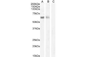 Western Blot: Preliminary testing showed an approx 60 kDa band in nuclear lysates of cell line Jurkat and in Human Spleen lysates (calculated MW of 57.7 kDa according to NP_000374.1). Recommended concentration: 1-2 μg/mL. Primary incubation 1 hour at room t
