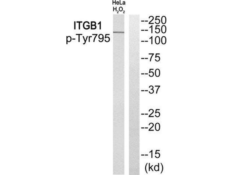 - The antiserum was produced against synthesized phosphopeptide derived from human ITGB1 around the phosphorylation site of tyrosine 795 (P-K-YP-E-G).