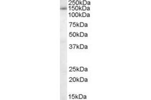 Western Blot: Approx 150 kDa band observed in nuclear lysates of cell line HeLa (calculated MW of 136 kDa according to NP_036558.3). Recommended concentration: 0.1-0.3 μg/mL. Preliminary testing was unsuccessful on NIH3T3 for this particular batch. Primary