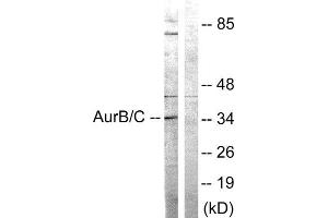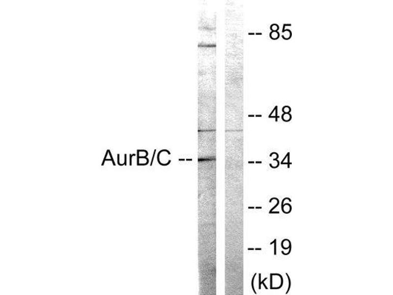 The antiserum was produced against synthesized non-phosphopeptide derived from human AurB/C around the phosphorylation site of threonine 202/175 (C-G-TP-L-D).