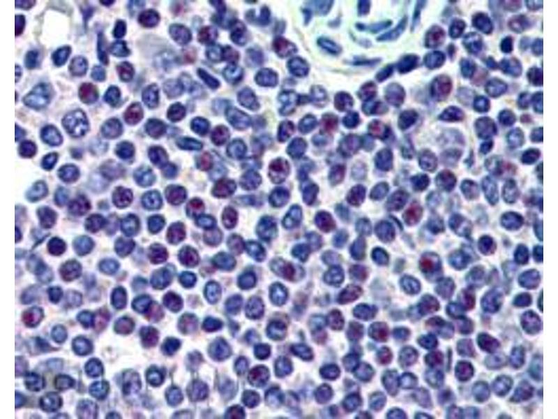 Immunohistochemistry: In paraffin embedded Human Spleen shows staining of nucleoli. Recommended concentration: 1-2 μg/mL.