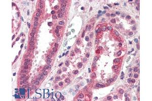 Immunohistochemistry: Paraffin embedded Human Kidney. Recommended concentration: 3.75 μg/mL.