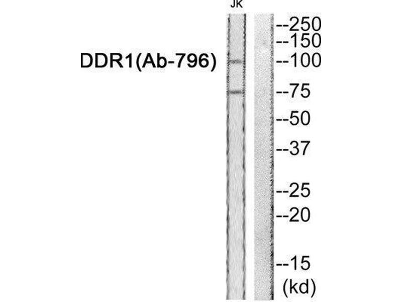 The antiserum was produced against synthesized non-phosphopeptide derived from human DDR1 around the phosphorylation site of tyrosine 796.