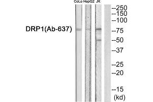 - The antiserum was produced against synthesized non-phosphopeptide derived from human DRP1 around the phosphorylation site of serine 637.