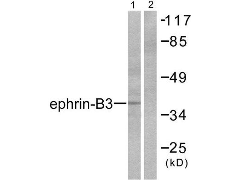 - The antiserum was produced against synthesized peptide derived from C-terminal of human Ephrin-B3.