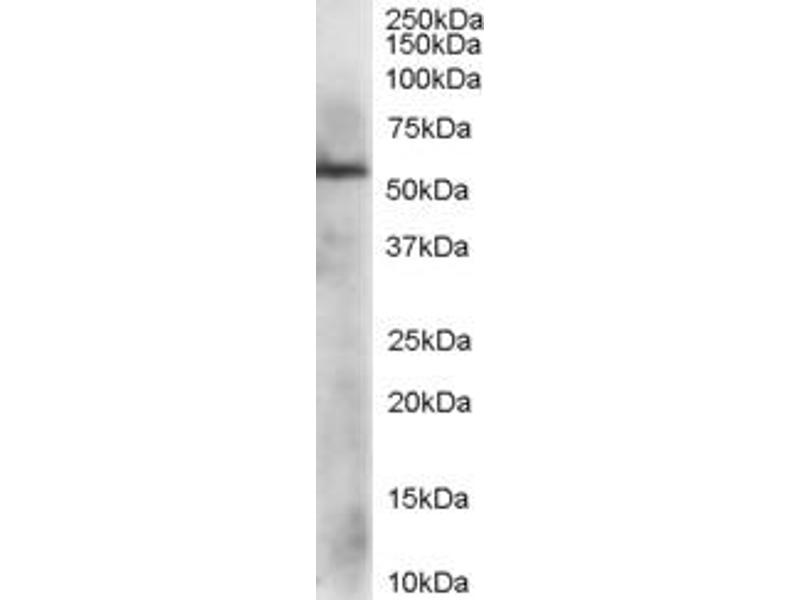 Western Blot: Approx 60 kDa band observed in lysates of cell lines NIH3T3, HepG2 and Daudi (calculated MW of 56.8 kDa according to NP_005304.3). Recommended concentration: 0.1-0.3 μg/mL. Primary incubation was for 1 hour.