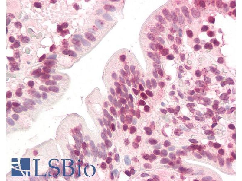 Immunohistochemistry: Paraffin embedded Human Small Intestine, Skin and Prostate. Recommended concentration: 3.75 μg/mL.