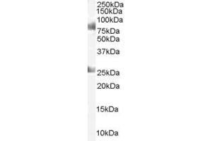 Western Blot: Approx 75 kDa band observed in Human Testes lysates (calculated MW of 66.5 kDa according to NP_004815.2). The observed molecular weight corresponds to earlier findings in literature with different antibodies (Lahn et al , Proc Natl Acad Sci U