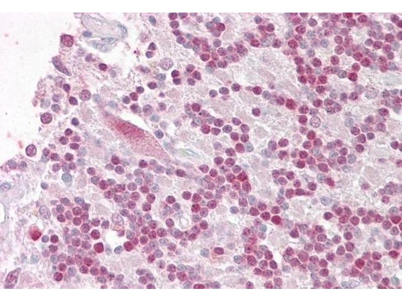 Immunohistochemistry: Paraffin embedded Human Testis and Brain (Cerebellum). Recommended concentration: 2.5 μg/mL.