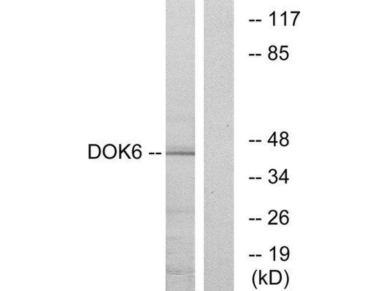 - The antiserum was produced against synthesized peptide derived from internal of human DOK6.
