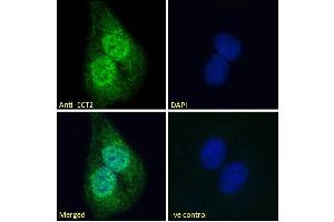 Immunofluorescence: Strong expression of the protein seen in the nuclei and cytoplasm of A431 and U2OS cells. Recommended concentration: 10μg/ml.