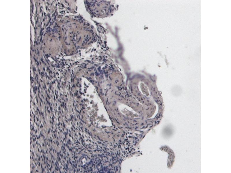 Immunohistochemistry: Paraffin embedded Human Ovary. Recommended concentration: 8 μg/mL.