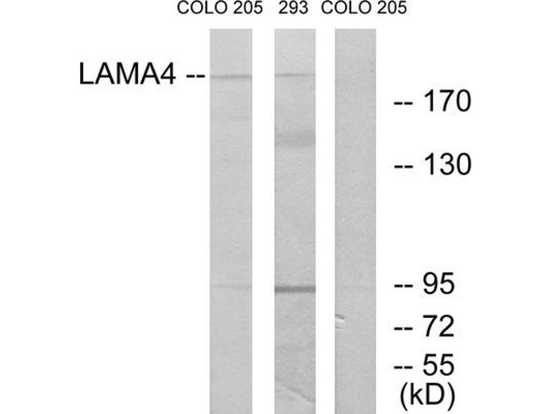 The antiserum was produced against synthesized peptide derived from internal of human LAMA4.