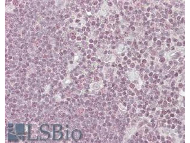 Immunohistochemistry: In paraffin embedded Human Thymus shows speckled staining of nuclei. Recommended concentration: 2.5-3.8 μg/mL.