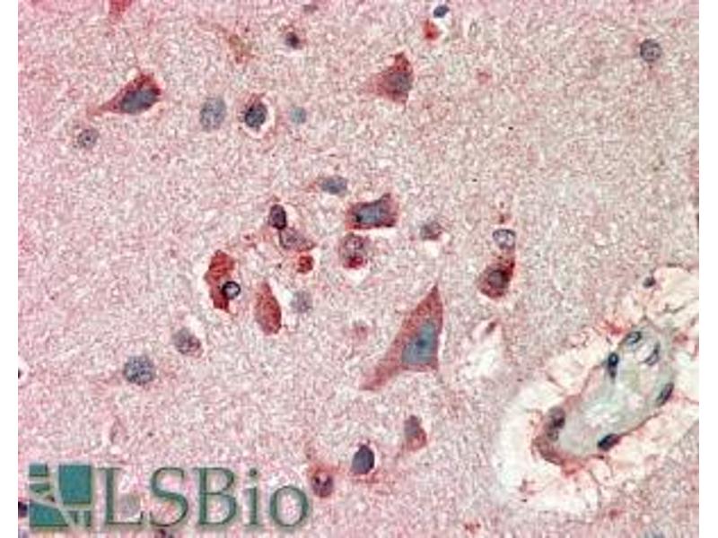 Immunohistochemistry: Paraffin embedded Human Cortex. Recommended concentration: 8 μg/mL.