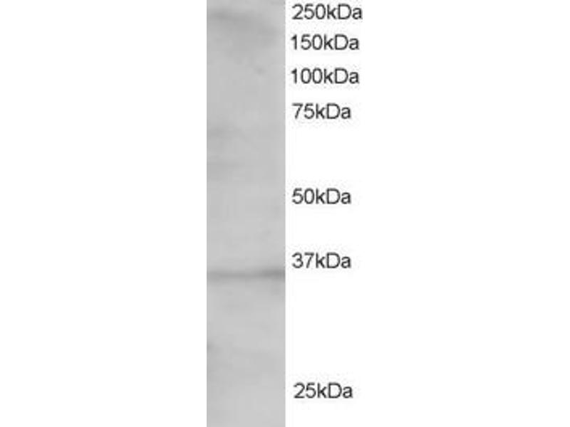 Western Blot: Approx 35 kDa band observed in 293 lysate (predicted MW of 41 kDa according to NP_009040). Recommended for use at 1-2 μg/mL.