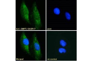 Immunofluorescence: Strong expression of the protein seen in the cytoplasm and nuclei of HeLa cells. Recommended concentration: 10μg/ml.