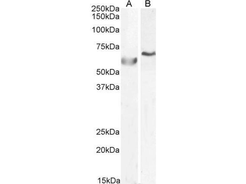 Western Blot: Approx 60 kDa band observed in cell lysates of A549 and approx 60-70 kDa in cell lysates of HepG2 (calculated MW of 63.5 kDa according to Human NP_037406.1). Recommended concentration: 0.5-1 μg/mL.
