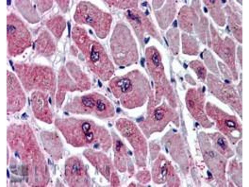 Immunohistochemistry: In paraffin embedded Human Pancreas, shows strong cytoplasmic staining in rare cells of intralobular ducts. Recommended concentration: 10 μg/mL. Also tested in paraffin embedded Human Heart where it shows speckled staining on myocar
