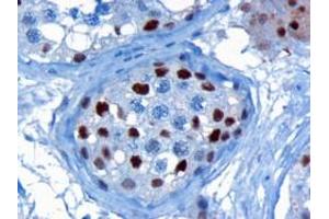 Western Blot: Approx 55 kDa band observed in Human and Mouse Ovary and in Mouse Testis lysates, and approx 60 kDa in Rat Testis lysates (calculated MW of 57.9 kDa according to Human NP_002259.1, Mouse NP_032493.1 and Rat NP_001014793.1). Recommended conce