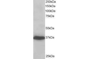 Western Blot: Approx 37 kDa band observed in lysates of cell line A431 (calculated MW of 35.4 kDa according to NP_003678.2). Recommended concentration: 1-3 μg/mL. Primary incubation 1 hour at room temperature.