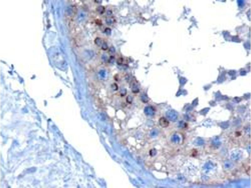 Immunohistochemistry: In paraffin embedded Human Testis, stains acrosomal head caps in round spermatids. Recommended concentration: 10 μg/mL.