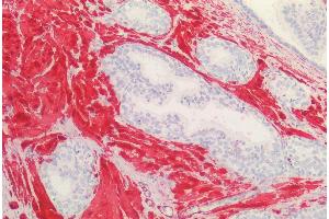 Immunohistochemistry: Paraffin embedded Human Prostate. Recommended concentration: 2.5 μg/mL.