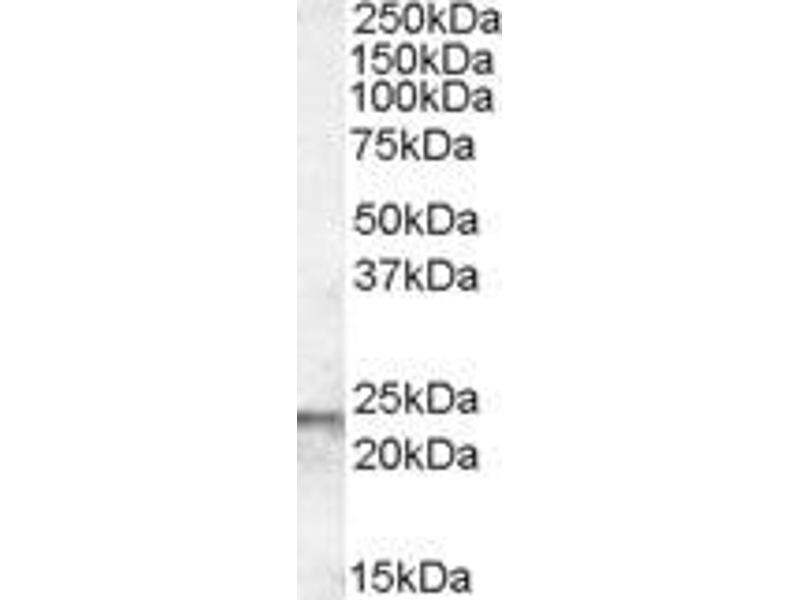 Western Blot: Approx 23-24 kDa band observed in Human Testis lysates (calculated MW of 22.6 kDa according to NP_003177.2 and NP_001001522.1). Preliminary testing also showed a band at approx 23 kDa in lysates of cell line HeLa and approx 25 kDa in Human Brea