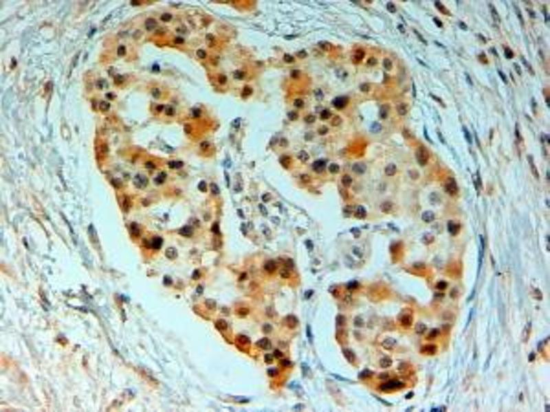 Immunohistochemistry: In paraffin embedded Skeletal Muscle shows spotty staining of striated fibres in longitudinal section. Recommended concentration: 2-3 μg/mL.