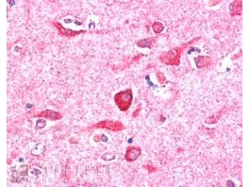 Immunohistochemistry: In paraffin embedded Human Cerebral Cortex shows strong staining of cytoplasm in several neuronal cells. Recommended concentration, 5-10 μg/mL.